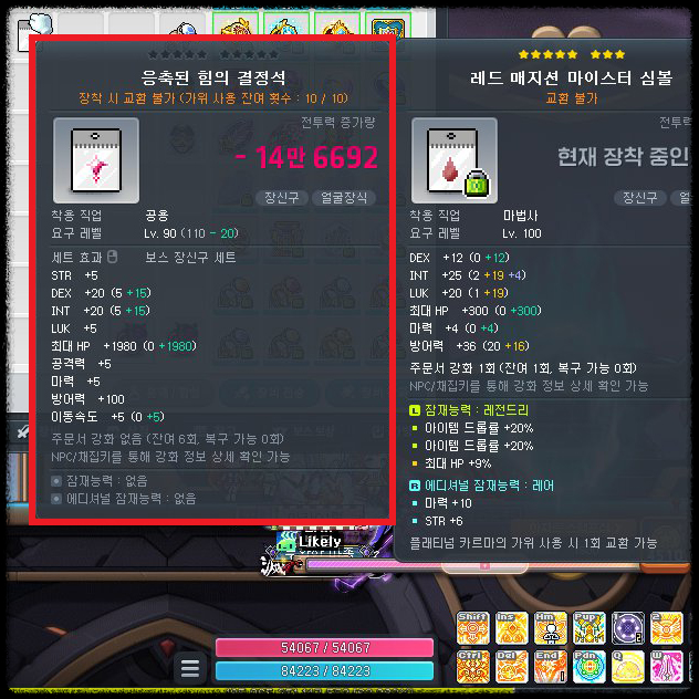 주간 보스 결정 가격만 약 9억 메소예요