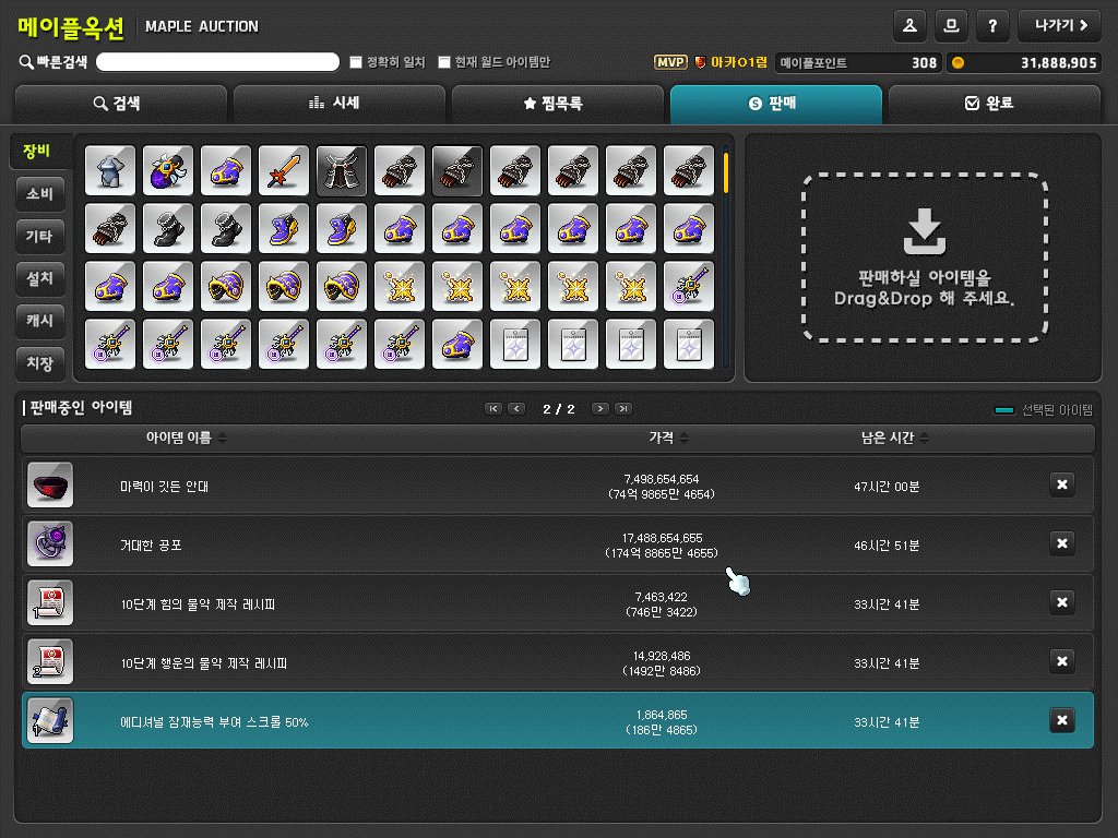 | 윗 잠재 | 천장 시, 약 4천만 메소 | 천장 시, 약 7억 메소 | 천장 시, 약 39억 메소 |
