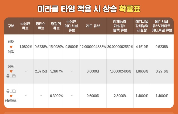 미라클타임은 잠재 능력 확률 증가 이벤트인데